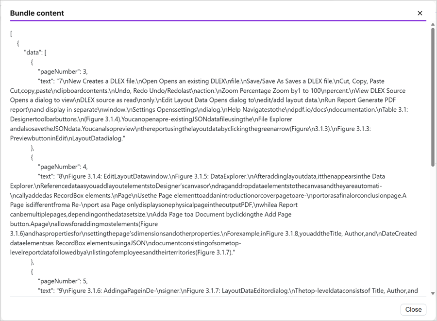 The endpoint returned the text as JSON, where each page contains its text. Because you told the module to parse the response, the JSON is formatted for easy display.