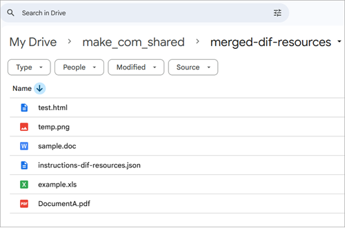 Refer to Make.com's documentation on the Google Drive module for more information (google-drive).