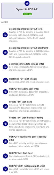 The DynamicPDF API provides integration with the Make visual platform so you can easily integrate PDF capabilities into your existing Make workflows.