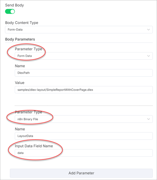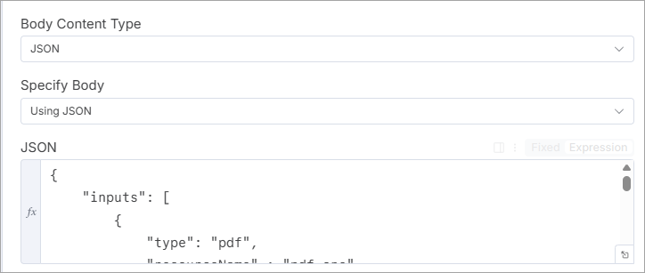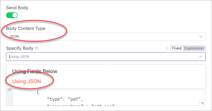 The DynamicPDF API endpoints accept different request body formats depending on their purpose. n8n supports all request body formats through the Send Body options within the n8n HTTP Request node.