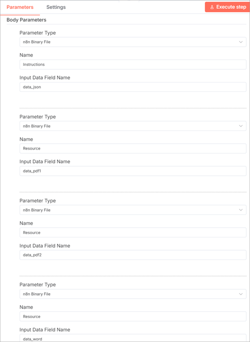 - Value: select an n8n Binary File from a previous node.