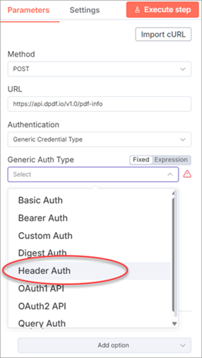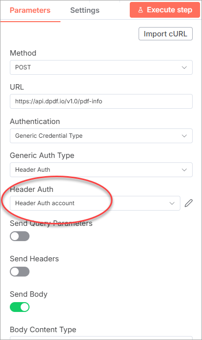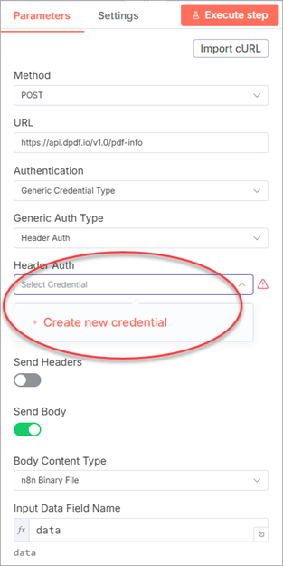 The DynamicPDF API provides integration with the n8n third-party platform so you can easily integrate PDF capabilities into your existing n8n workflows. The DynamicPDF API can be used directly in an n8n workflow by combining the HTTP Request node with n8n’s binary file handling and JSON features. This page explains how to configure authentication, send different types of request bodies, and work with common DynamicPDF API endpoints.