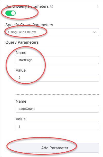 - Toggle Send Query Parameters.
