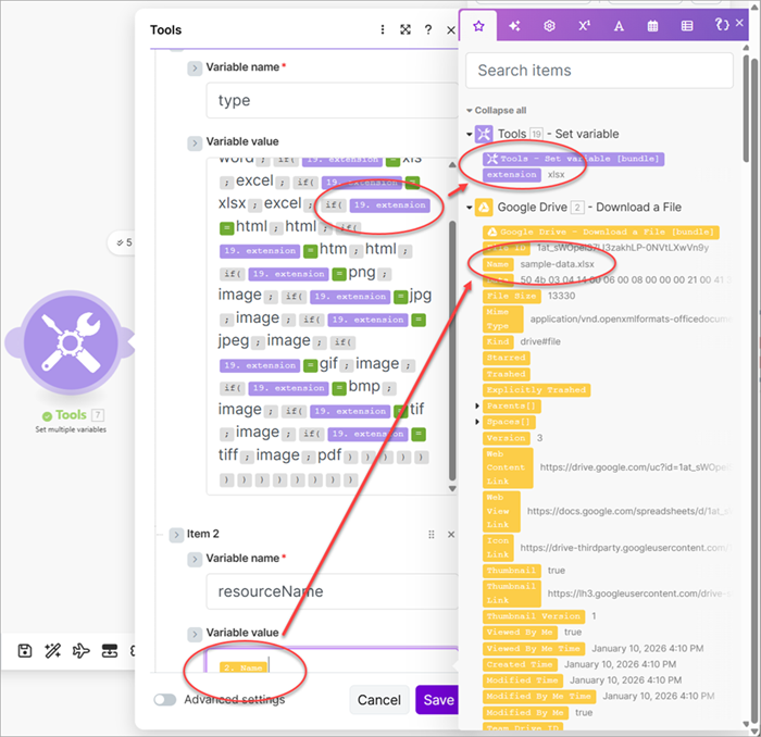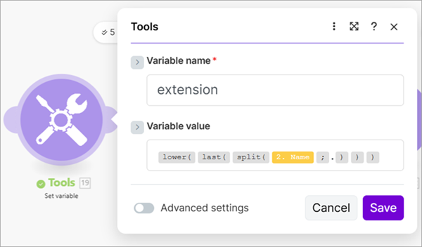 extensionand get the extension from the previous Download a File module as the variable's value.