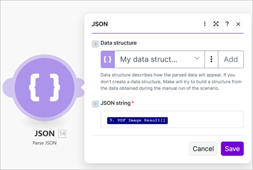 - Use a Parse JSON module to parse the JSON into a data structure.