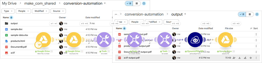 Automate PDF processing using Make scenarios. Using the DynamicPDF API custom Make app is straightforward, as the following three sample scenarios illustrate how files can be detected, transformed, and routed automatically through the DynamicPDF API endpoints.