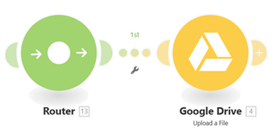 When the Router is added, it automatically connects the Google Drive - Upload a File module as the first route.