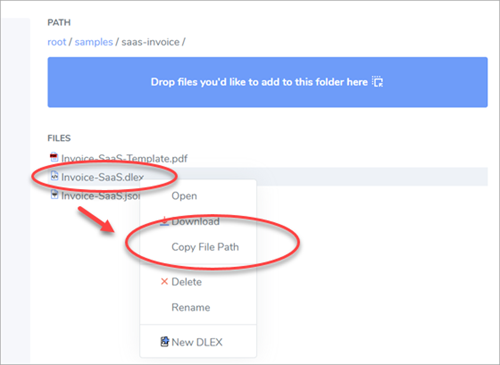 - Return to DynamicPDF API's File Manager and copy the DLEX file's path to your clipboard.