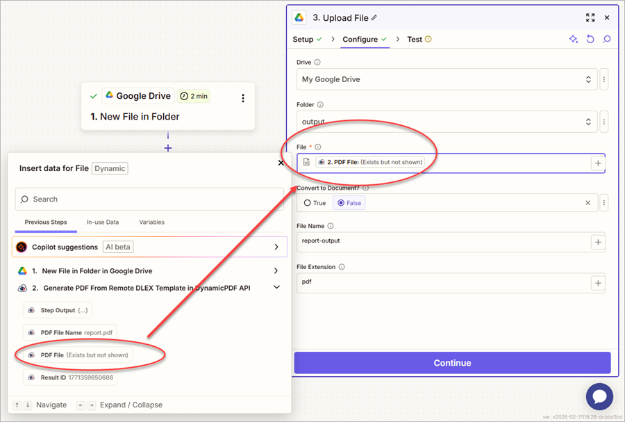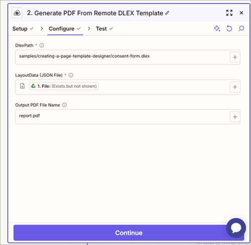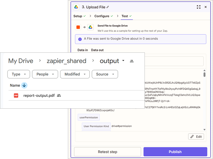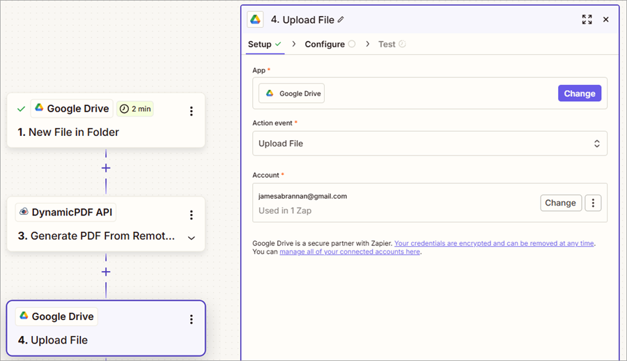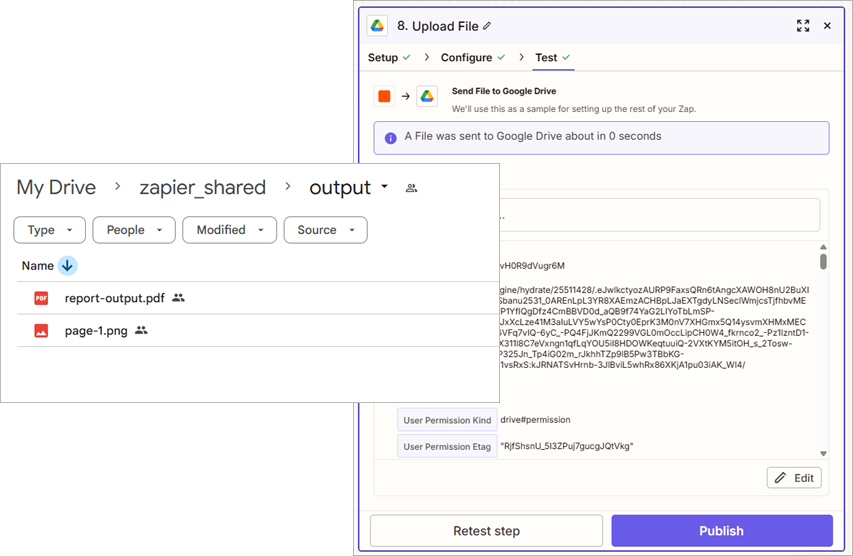 - Test the step and the PDF is uploaded to Google Drive.