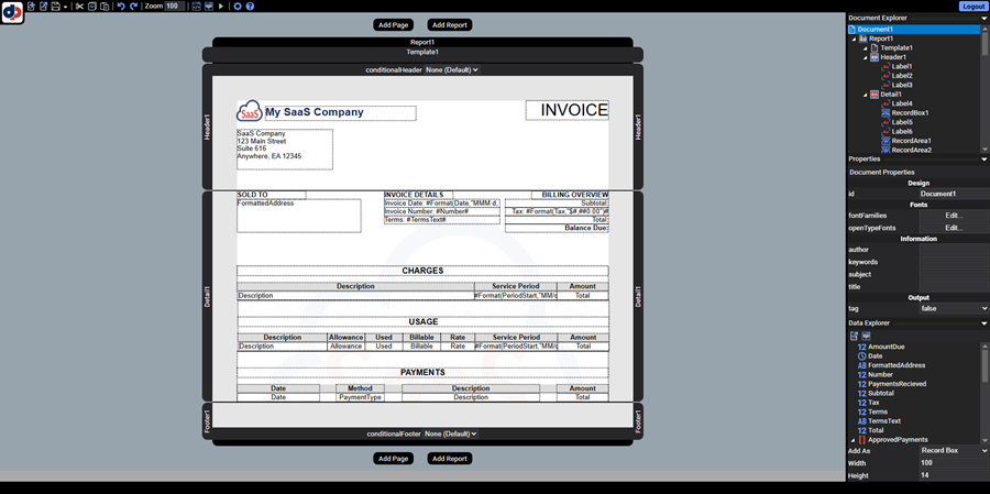 Invoice-SaS.dlexin DynamicPDF Designer.