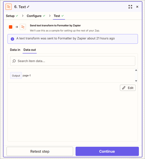 - Map the Output from the first 6. Text in Formatter by Zapier step to the File Name field