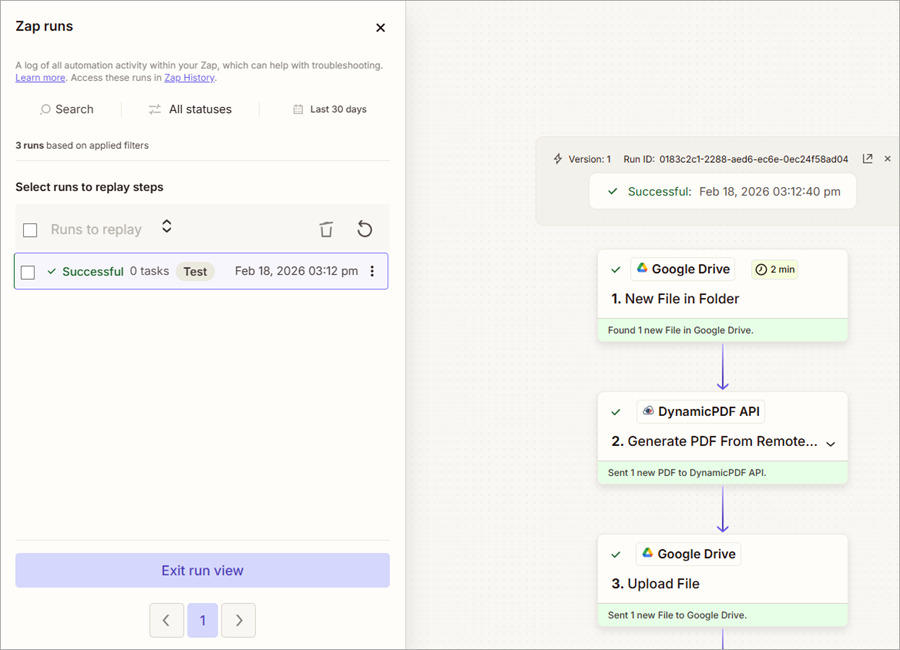 This workflow demonstrates how DynamicPDF API can serve as a powerful document engine inside Zapier, enabling automated report generation, PDF transformation, and multi-file processing without writing custom code.