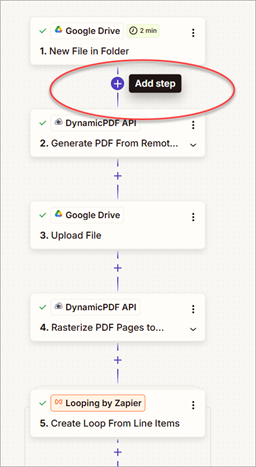 Although when creating and testing a Zap step by step, only a single image is returned, the pdf-image endpoint can return multiple images when rasterizing multiple pages. To process the images, use a Looping by Zapier action to iterate over the images created in the previous step.