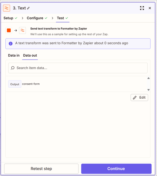 Now let's test the Zap. To properly test rasterizing a PDF with multiple pages, let's modify the Zap to use the consent-form.json layout data and the consent-form.dlex file.