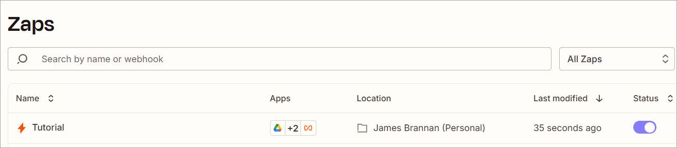 - Publish the Zap so that it will run every two minutes.
